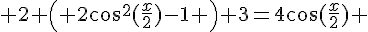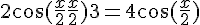 Bonsoir tout le monde, voilà, je cale un peu sur cette équation : 2 cos x + 3 = 4 cos Quelqu'un pourrait-il m'aider ? merci