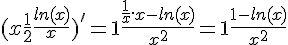 bonjour, je cherche la dérivée de x+(1/2)+lnx/x j'ai utilisé la formule u/v mais au final je trouve quelque chose de bizarre :1+x-x^4lnx aidez moi svp ! merci d'avance