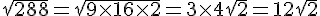 Ensuite je décompose juste 288 afin de prendre facilement la racine carrée :