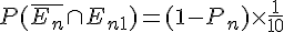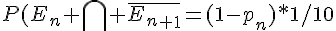 P(E_(n+1) intersection complément de E_n)=P(complément de E_n)P_(complément de E_n)(E_(n+1)=(1-Pn)*1/10