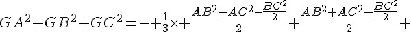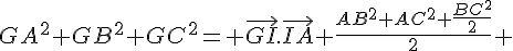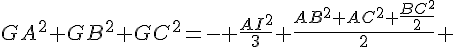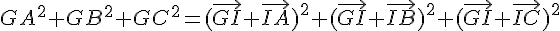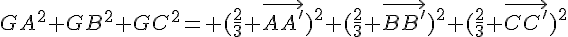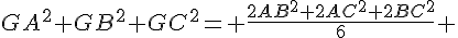 Voici l'énoncé : ABC est un triangle quelconque et G son centre de gravité. On pose AB = c , BC = a et AC = b . Exprimer en fonction de a, b et c le nombre : GA² + GB² + GC².