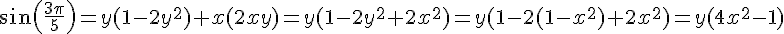 =>montrer que Sin(3pi/5)=y(4x²-1) sachant que x=Cos(pi/5) et y=(pi/5)