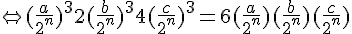 Cliquez pour affichera = x/y, b = u/v, c = w/z. D'après la relation de l'énoncé, on remarque que si (a,b,c) est solution alors (x,u,w) l'est aussi. On peut donc se ramener au cas où a, b et c sont des entiers et comme (-a, -b, -c) est aussi solution, on peut donc se ramener au cas où a, b et c sont des entiers naturels.