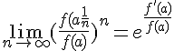 Donc lim exp(n/n.[ln(f(a+1/n)-ln(f(a))/(1/(1/n))] = exp(f'(a)/f(a))