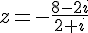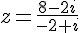 z=((8-2i)(-2+i))/((2-i)(2+i))=(14-12i)/5={(14/5)-(12i/5)}