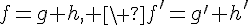 Un petit exemple : Soit la fonction définie et dérivable sur , . La fonction f est de la forme , avec . Tu as alors (formule du cours) ; or (dérivée à connaître) et (puisqu'on a en générale après dérivation). Ainsi, tu as .