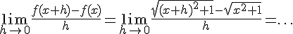 C'est trop simple comme résultat. Moi j'ai une fraction avec deux racines carrées au dénominateur et le numérateur est effectivementDonc je trouve pour la limite 2x+h..