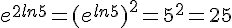 e^ln25 = e^x avec x = ln25 => e^x=25 okk