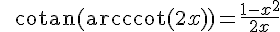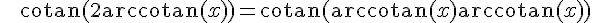 tu appliques cette formule en deux temps (le 2arccotan = arccotan + arccotan) et utilisant que cotan(arccotan(x))=x