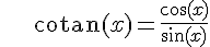 La cotangente est peu usitée de nos jours dans les bouquins francais, c'est la fonction définie par
