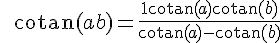cotan (a+b)= ((cotan a . cotan b) - 1)/(cotan b + cotan a)