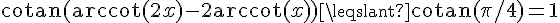 2x < (1-(cotarcot2x)(cot pi/4)) / (cot pi/4) + (cotarcot2x)