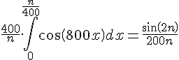 400 / π intégrale cos (800t) dt entre les bornes 0 et π / 400