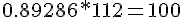 Par contre, si ta question c'était: quel pourcentage de 112 font 100, alors tu poses:
