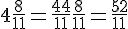 voilà je suis une formation pour devenir dessinateur projeteur et il me faut pour cela me souvenir des bases de la trigonométrie, hors je ne me souvient de presque rien....par exemple dans un exercice on me dit sous forme de fraction que 52/11=4' 8/11.le problème c'est que je sais pas comment il sont arrivé à trouver 8....si quelqu'un peut m'éclairer cela m'arrangerai bien; merci