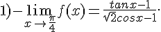en multipliant et divisant par (x- pi/4) dans la première, et par x dans la deuxième, on reconnait aisément les dérivées de fonctions connues. Autrement dit, on applique la règle de l'hopital sans le dire.