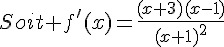 j'ai dérivé la fonction et j'obtient f ' (x)=(x+3)(x-1) / 2(x+1)²