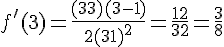 1) on me demande de déterminer une équation de la tangente (T) a (Cf) au point A d'abscisse 3 (cette question je l'ai fait mais j'ai l'impression de pas avoir la bonne valeur vu que mon coef.directeur c'est 31/8)