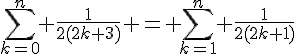 Apres j'ai demontré que 1/[(2k+1)(2k+3)]<(ou égal) 1/2. Mais je n'arrive pas à inséré le signe somme (sigma) dans mon inégalité . Pouvez vous m'aider svp.