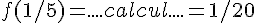 Il y a donc un extremum en 1/5 (et on suppose justement que c'est le minimum qu'on cherche). Pour connaître sa valeur on cherche f(1/5):