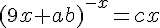 Soit : -x(ln(a)+ln(9x+b))-ln(x)-ln(c) = 1