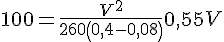 Donc il faut inverser cette formule : d = [V² / 260 (f + i)] + 0,55V donc 100 = [V² / 260 (0,4 - 0,08)] + 0,55V.