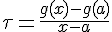 , et non pas ce que tu as écrit. Donc là tu vois effectivement tout de suite que ta fonction est bien un taux d'accroissement (je laisse trouver f(x) et a pour que ce soit le cas).