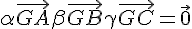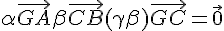 ABC est un triangle, G est le barycentre de (A ; alpha), (B ; beta) et (C ; gamma) ; delta est la parallèle à (BC) passant par A, O est le milieu de [BC].