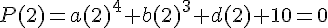 Donc j'ai trouvé pour a=2, b=5, d=7; mais cela ne marche pas pour les trois équation lorsque je remplace. Où ai-je fais une gaffe?