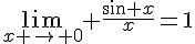 Sinon pour lim(x-->0)(sinx/x) tu peux écrire que c'est égal à lim(x-->0)([sin(0+x)-0]/x)=lim(x-->0)([sin(0+x)-sin(0)]/x)=sin'(0)=cos(0)