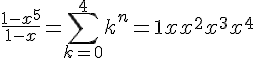 La fonction est (1-x^5)/(1-x), et sa dérivé est 4x^3+3x^2+2x+1.