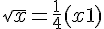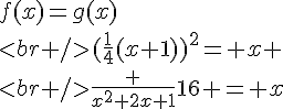 Voila j'ai deux fonction y= racine de x et y= 1/4 (x+1)