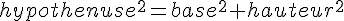 J'ai posé la hauteur = x l'hypothénuse=x+2 et lotre côté x+1