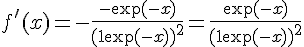 De ce fait, je tombe sur f'(x) = -e^-x/ (1+e^-x)²