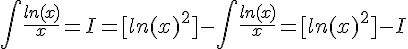 Bonjour, j'ai un probleme avec cette exercice INtegrale de 1 à e de la fonction f(x)= lnx/x dx J'ai essayé l'intégration par parties mais sa ne marche pa comment faire alors