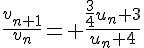 Je trouve: 3/4un+3 / un+4, il doit y avoir des simplifications à faire mais je trouve pas :/