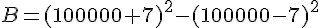 si tu regardes bien, ton expression B=100 007^2-99 993^2 est en fait de la forme (a+7)^2-(a-7)^2 avec a=...? (a toi)