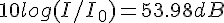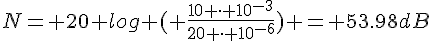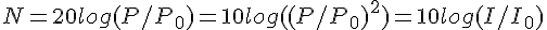dans les données on nous dit que N en décibels (dB) par N= 10 log I/I0 où I est l'intensité sonore et I0 une intensité sonore de reférence. I est proportionnelle au carré de la pression acoustique P en pascals