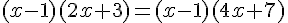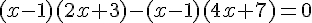 Je te donne le début de l'équation (x-1)(2x+3)-(x-1)(4x+7)=0