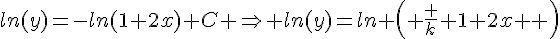La correction donne comme résultat : k/(1+2x) et je ne vois pas comment on trouve cela