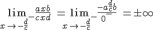 a ok la lim(x->(-d/c) de 0 = + ou - l'infini , je dirais moins car c'est -d/c ??
