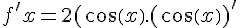 Vous savez en outre que g'(X)=2X donc g'(cos(x))=2cos(x) et cos'(x)=-sin(x). Il ne vous reste plus qu'à remplacer dans l'expression de f'(x) pour avoir votre résultat.