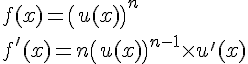 Cette règle revient à remplacer tous les "x" par une fonction u de x dans la table ci dessus, et à multiplier le résultat de la dérivée par u'(x).