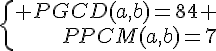 Peux-tu m'aider sto pour pgcd (a,b)=84 et ppcm (a,b)=7 car je suis bloquée. Je trouve une fraction pour a'b'.