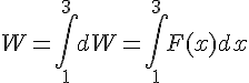 Soit une force F d'intensité variable agissant parallèlement à l'axe x gradué en mètres et déplaçant son point d'application sur l'intervalle [1 3] selon la formule