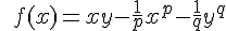 Donc la fonction est f ne prend que des valeurs négatives. Ce qui donne l'inégalité de Young. D'autre part, on voit que le cas d'égalité est donnée lorsque f(machin) = 0, i.e. lorsque x^p = y^q.
