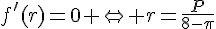 Je dois faire une problème d'optimisation avec la dérivée et je n'y arrive vraiment pas. On me dit que je dois trouver le rayon qui maximiserait l'aire d'un vitrail ,ayant la forme d'un rectangle surmonté d'un demi-cercle, par rapport au périmètre de celui-ci, mais on ne me donne pas le périmètre ni aucune mesure. J'ai essayé d'isoler le rayon dans la formule du demi cercle, mais j'ai trop de variables pour dériver par la suite... Je ne sais vraiment pas quoi faire!