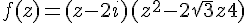 Dans un exercice de Terminale S, j'ai f(z) = z^3 – 2(sqrt(3) +i)z^2 + 4(1+sqrt(3)i)z- 8i .