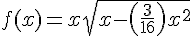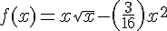 Bonjour, je n'arrive pas à trouver la derivee de "f(x) = x racine de x - 3/16 eme de x carré " ... aidez moi svp ! merci d'avance