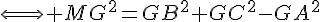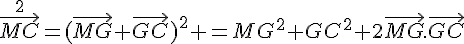 J'ai essayé d'utiliser le Barycentre, et j'arrive à MG=-MA+MB+MC (vecteurs)